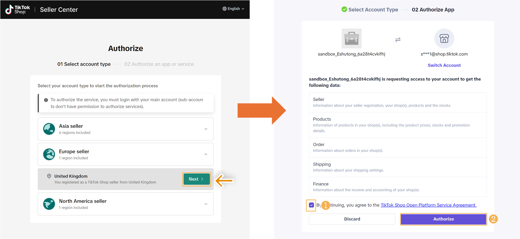 然后,在TikTok授权页面里,选择要授权的站点,登录账号密码,进行应用授权