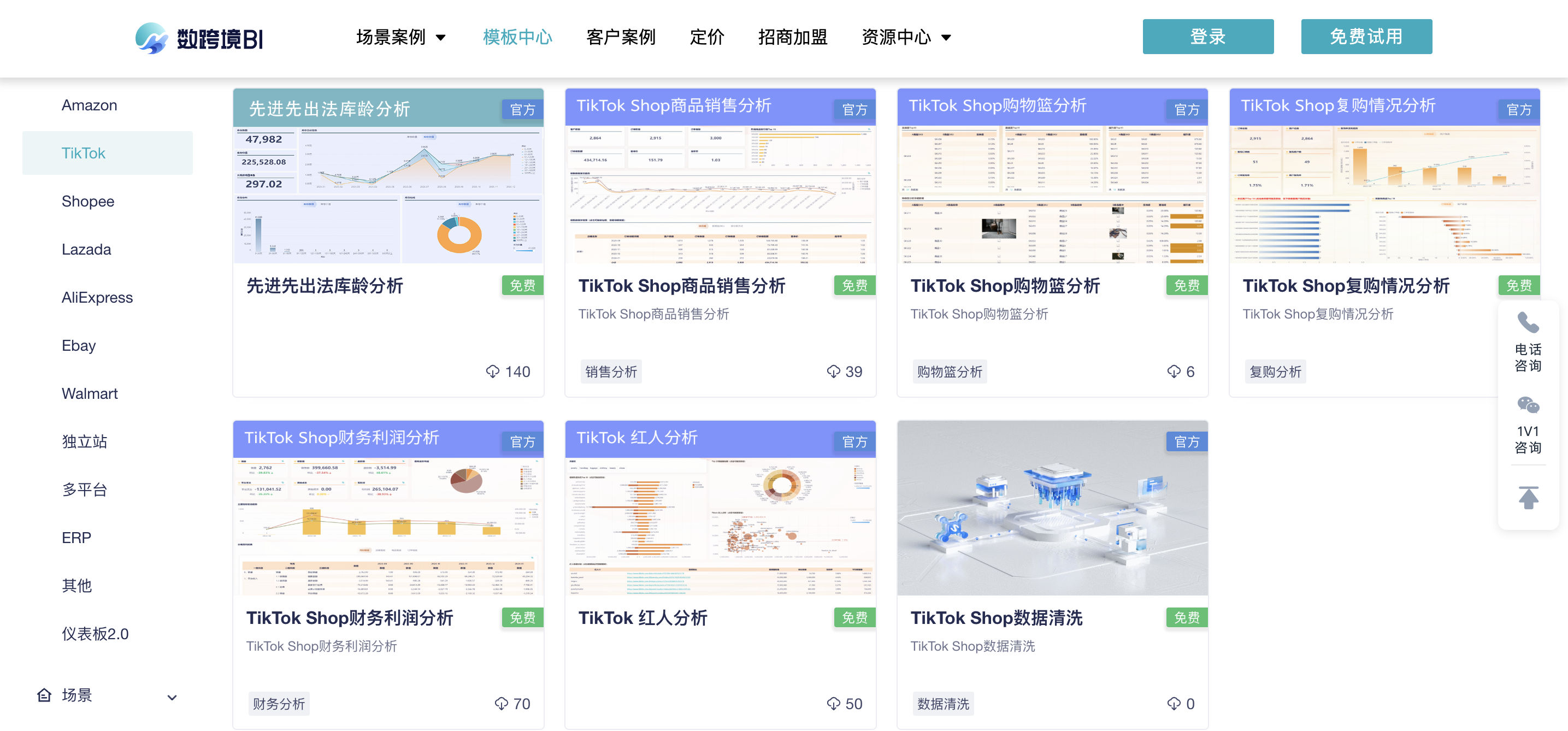 在TikTok运营中,“数据找不到、算不清、用不上” 是很多跨境卖家的共同痛点,数跨境BI针对TikTok平台提供全链接数据分析方案,包括财务利润分析、商品销售分析、商品购物篮分析/复购分析、红人分析、库存分析等,为卖家提供可落地的决策依据。