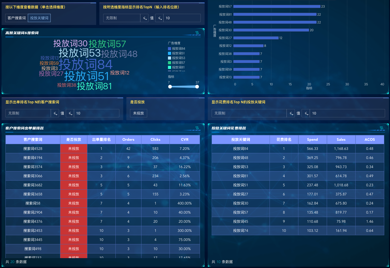 数跨境 BI 能够自动生成“高点击低转化关键词清单”,并且能结合广告消耗与利润,判断广告到底是“烧钱”还是“赚钱”。避免人工逐条下载报告。