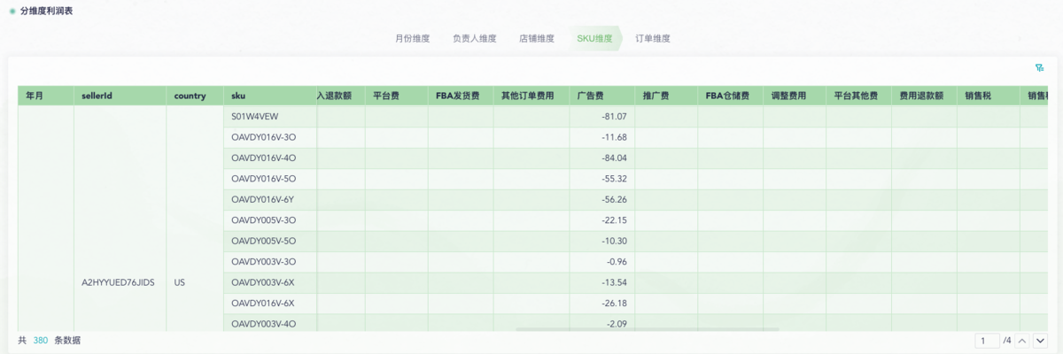 结合出厂FOB、装柜量、头程等数据,可以进一步计算出每个SKU的成本。