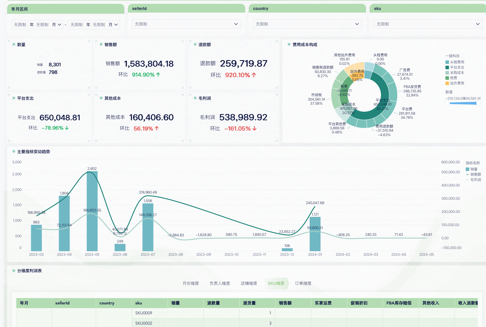 如果希望把这些环节统一到同一个数据体系中, 可以借助数跨境BI,实现: