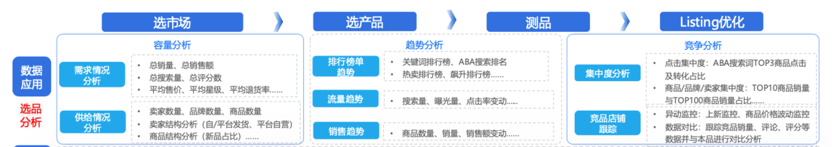 选品是所有工作的起点。 一般根据公司情况发提出备选方向,这个时候运营通过市场数据去验证可行性。 也就是我们常见的选品分析。调研时要关注: