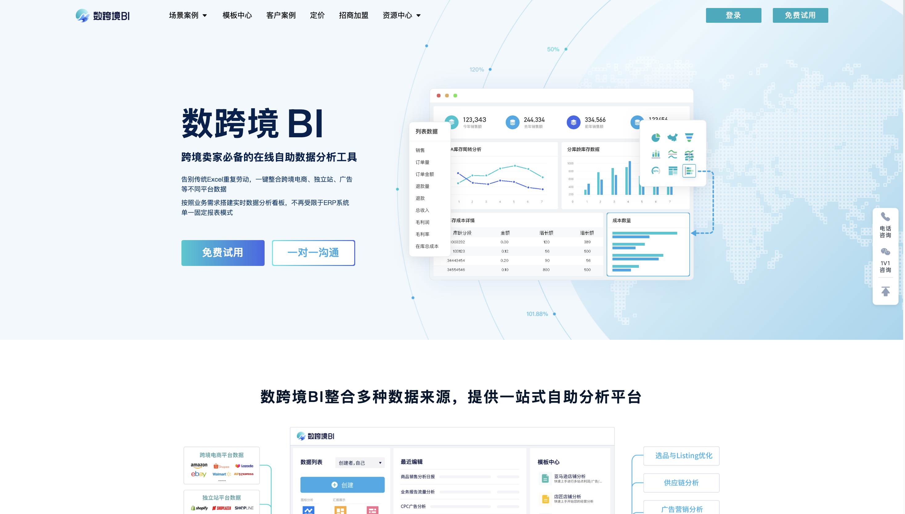 数跨境 BI 属于偏「经营层」的数据分析工具,核心价值不在于看单一指标,而在于 整合跨境业务数据,帮你算清楚整体经营结果。