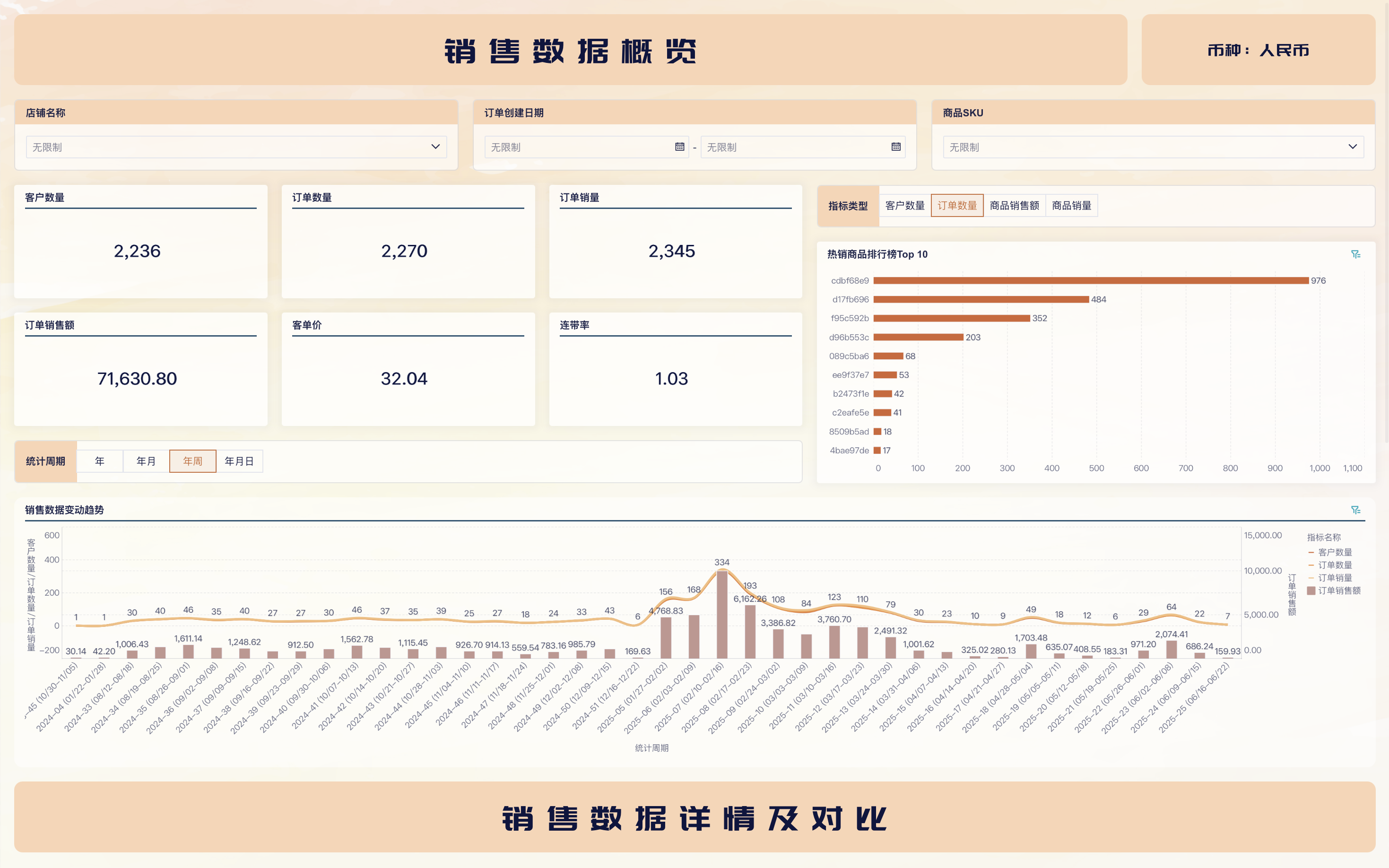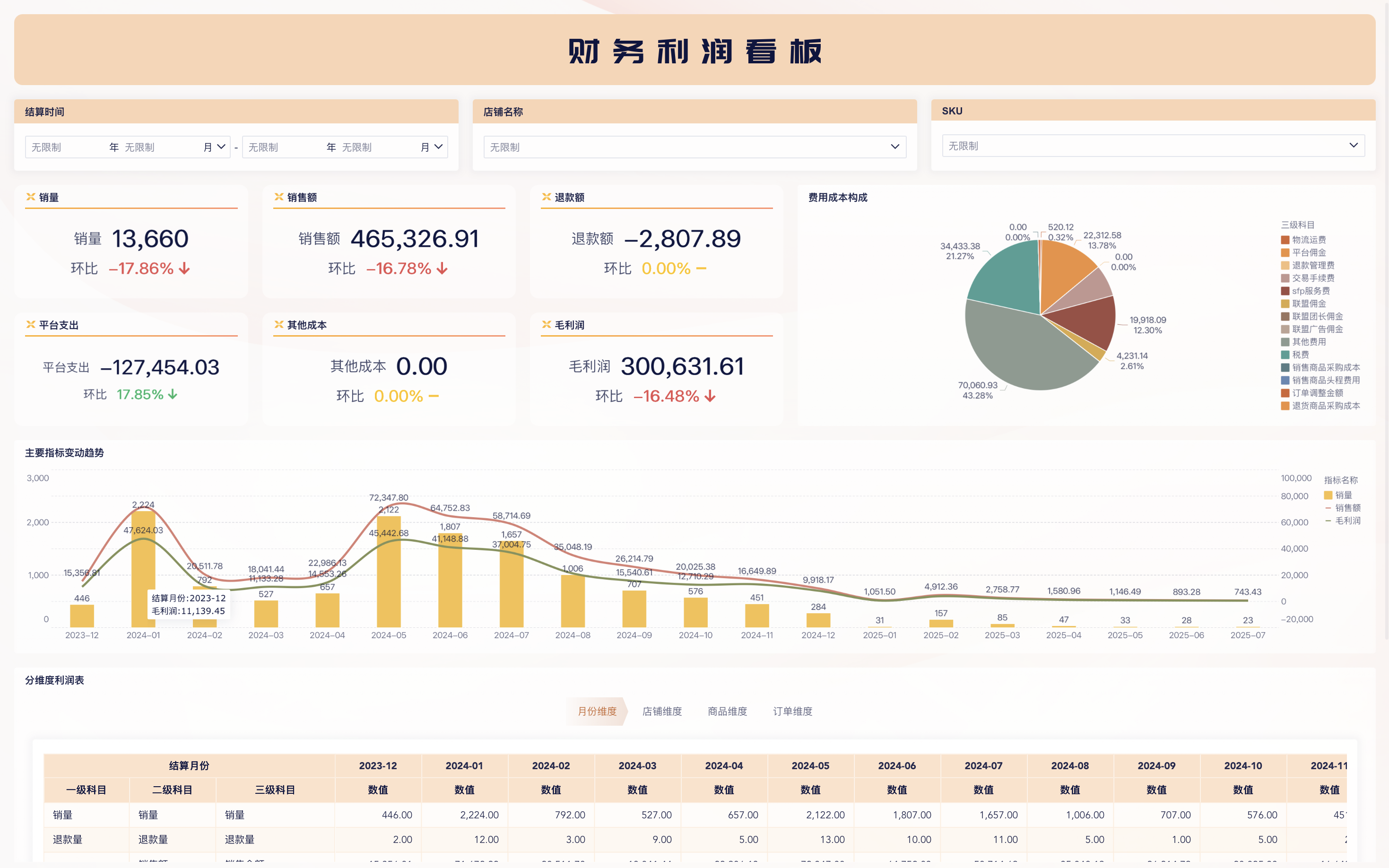 - 生成 GMV、利润趋势、库存周转等可视化报表