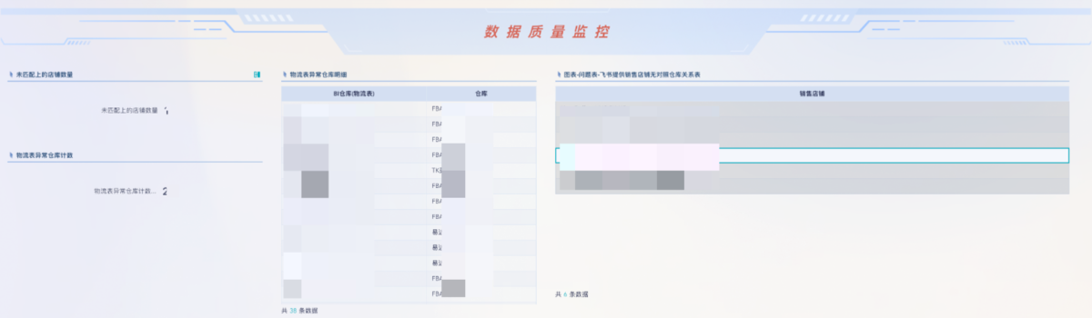 SKU编码在生产端、销售端、平台端各不相同。仓库名称、仓库位置在货代侧,在ERP内部也存在口径不一致的问题。之前通过表单工具,制表人只能被动发现异常,遇到一个处理一个;但是整体哪些数据未完善,哪些数据有缺失,难以把控的。通过数跨境BI,及时反馈异常问题,保证数据的规范性和及时性。