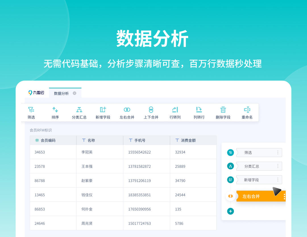 你会发现Execl复杂的操作,在数跨境仅需一两步就能实现。表格合并、筛选、汇总,百万行数据分分钟搞定,感受次世代的分析体验!